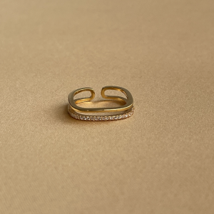 İnce Taş Sıralı Kare Yüzük – Gold Rengi